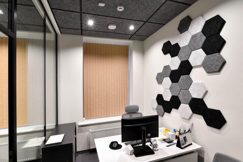 Med FibroTech Hexagon kan du dekorere din væg - eller dit loft, præcis som du ønsker. Hexagonerne kommer i 4 farver med 18 stk. af samme farve i hver box. De er baseret på vores MultiFin træbetonplade med 1 mm træuld, en pladetykkelse på 25 mm og fas på 5 mm – og så er de meget nemme at opsætte med FibroTech Montagelim. Skab et flot, unikt og måske helt personligt udtryk - og gør dig bemærket på den gode måde.