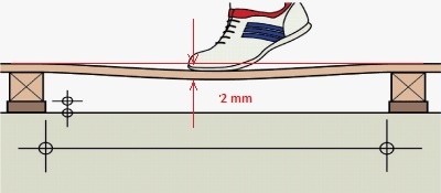De angivne afstande sikrer et rimeligt stift gulv, der ikke giver generende rystelser ved gang eller medfører, at møbler og inventar får generende hældninger på grund af gulvets nedbøjning. Understøtningsafstanden er afhængig af den valgte materialetykkelse og den forventede belastning.