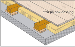 Strøer opklodses på en underliggende konstruktion af fx beton, letbeton eller træ, så der opnås et plant underlag for trægulvet.