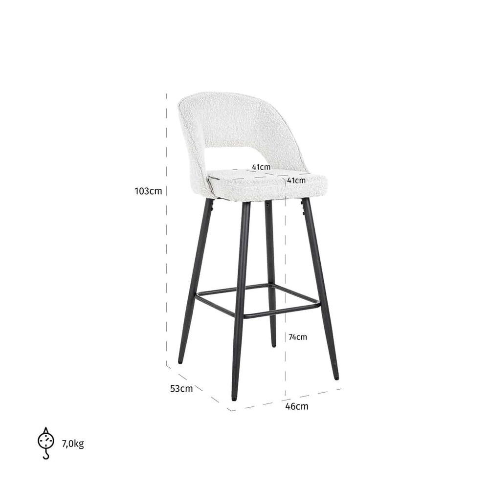 Materiale: Stof: hvid Bouclé 900/100% polyester | Ben: Stål sort