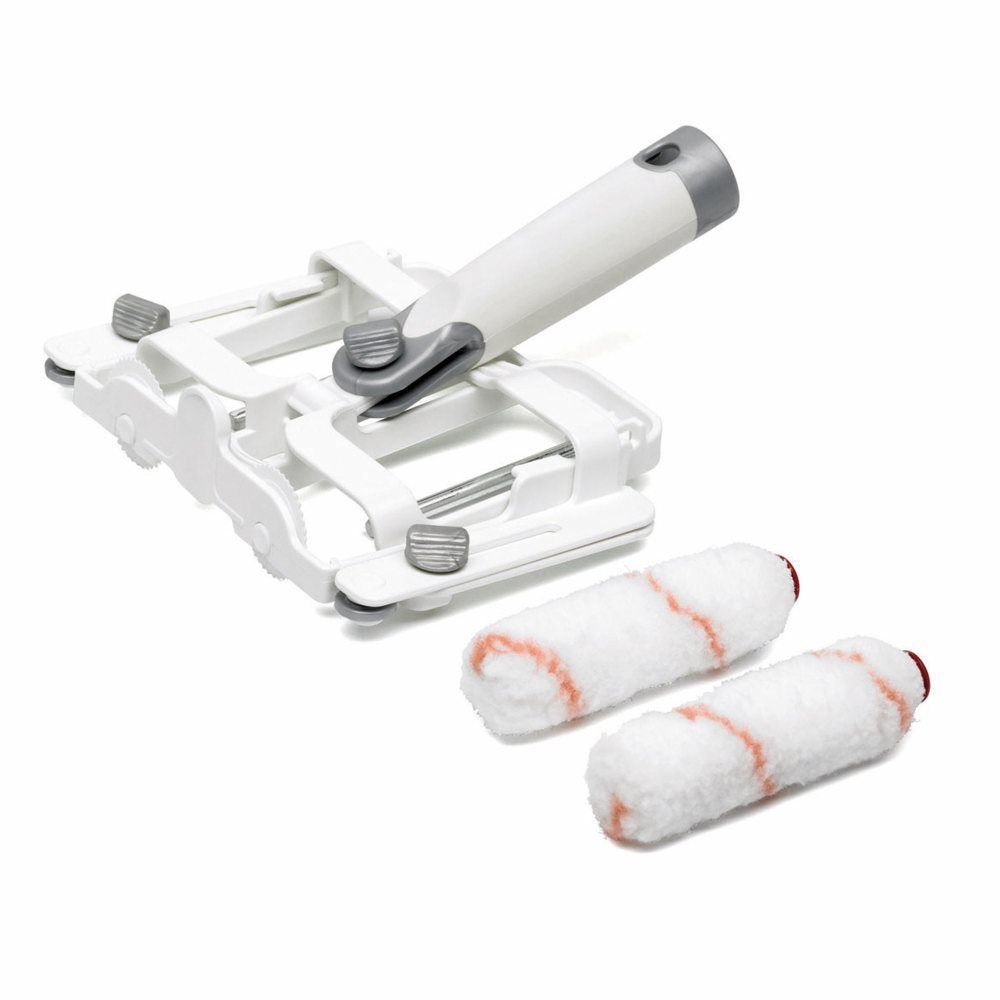 Til beskæring mod loft, væg, træværk. Arbejder med to ruller, der hurtigt og ensartet dækker en stor flade. Afstanden fikseres med en skruelås. Tydelig skala til indstilling af afstand. Let montering/afmontering af ruller og let at rengøre. 2-komp. håndtag.