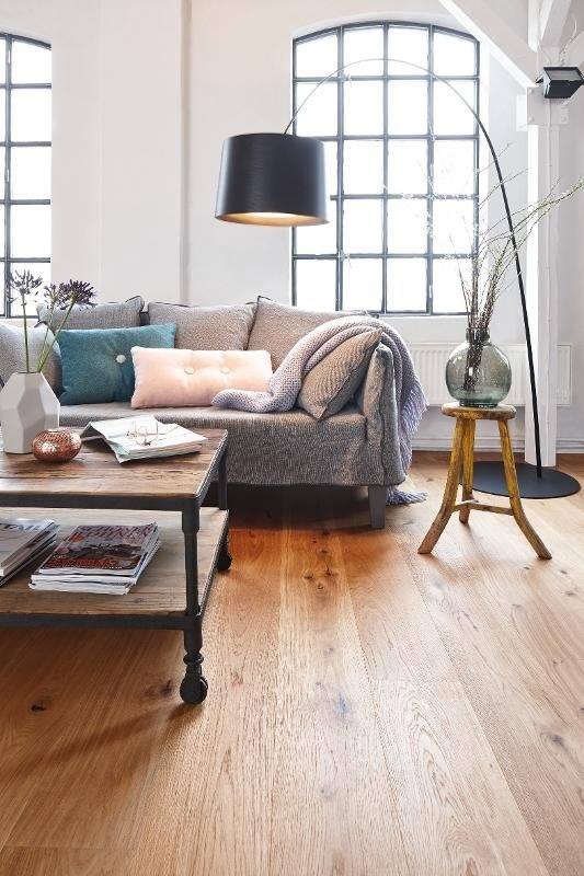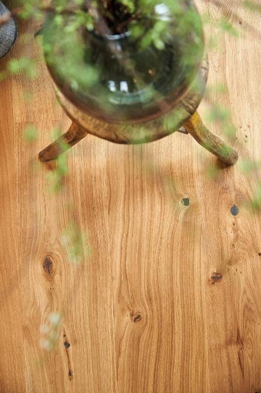 Behandling: Live Natural Olie - Den ultimative olie. To lag med naturolie bliver masseret, børstet og presset ind i træværket med en helt ny påføringsteknik kaldet «Air-Plus Process». Træets porer mættes, slidstyrken forbedres og glansgraden bliver mere jævn. Dermed bliver gulvet også lettere at vedligeholde.