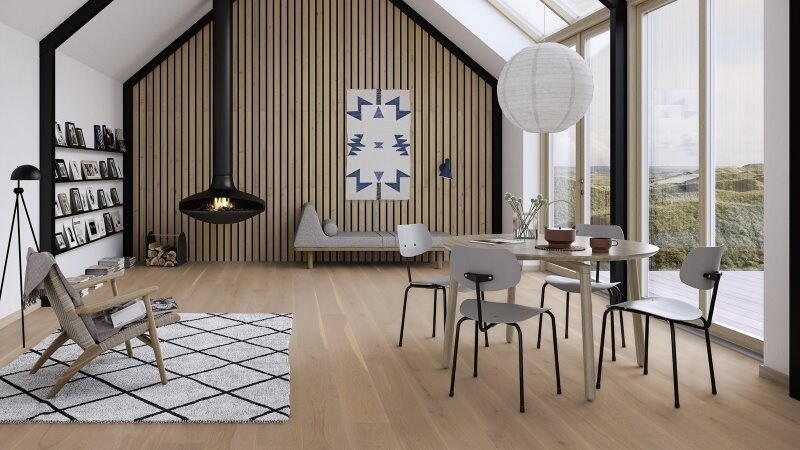 Behandling: Live Natural Olie - Den ultimative olie. To lag med naturolie bliver masseret, børstet og presset ind i træværket med en helt ny påføringsteknik kaldet «Air-Plus Process». Træets porer mættes, slidstyrken forbedres og glansgraden bliver mere jævn. Dermed bliver gulvet også lettere at vedligeholde.