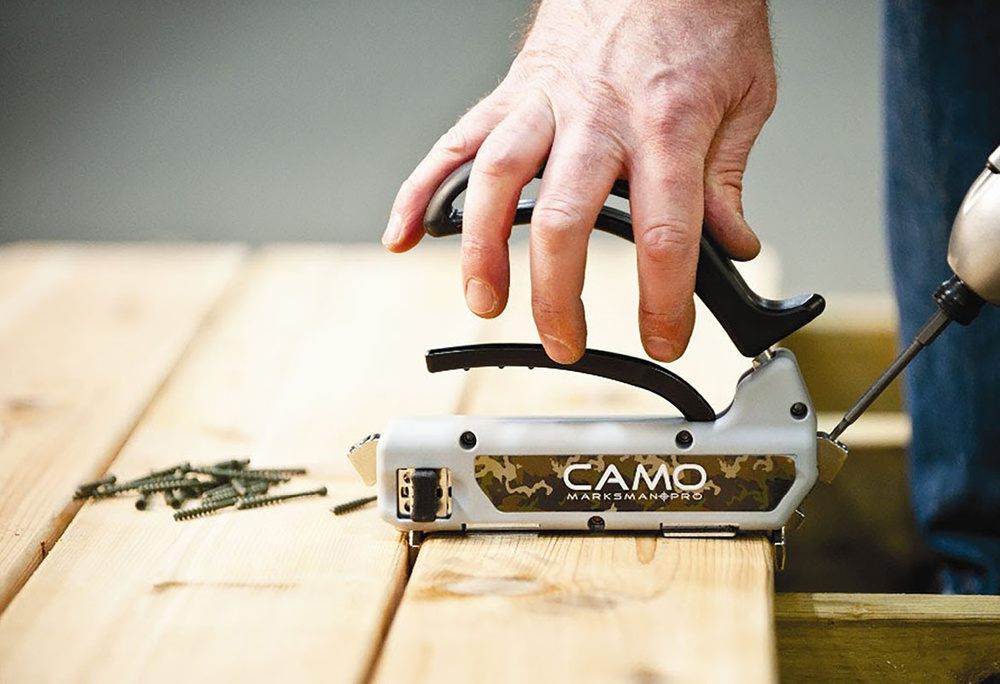 CAMO Marksman Pro 5. Det revolutionerede og brugervenlige monteringsværktøj/fastgørelsesværktøj, som gør det muligt, at montere terrassebrædder uden synlige skruehuller.