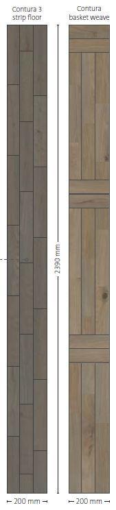 Contours er et design, hvor fugen skaber et fantastisk samspil med lysets indfald. Den intensive børstning samt olieringen, fremhæver overfladernes naturlighed og sammen med fugen, som er på alle 4-sider af staven, giver det gulvet et elegant og moderne udseende.