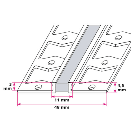 Dilatationsprofil, lille til 3 mm. - midthullet
