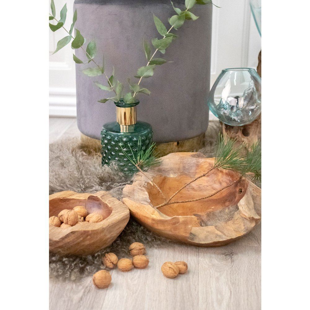 Flot rustik teakskål, alle skåle er unikke og formet ud af træets rod.