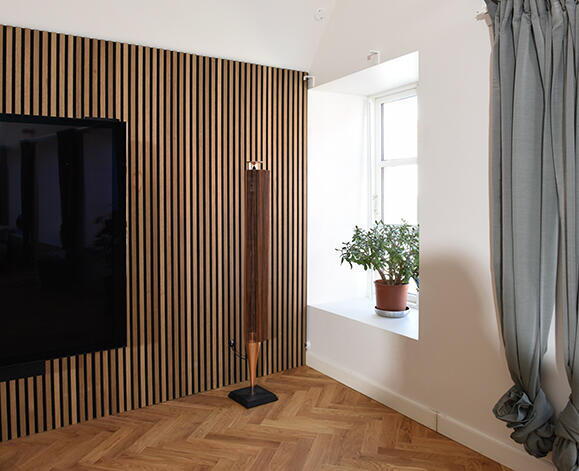 Hos Gulvlageret er vi vilde med den nordiske indretningsstil. Vi elsker det rå look som træ skaber. Vi har derfor lyddæmpende paneler til væg og loft, som passer perfekt til denne stil. Akustikpanelerne har de samme fordele som vores akustikplader af træbeton, der er med til at forbedre akustikken i hjemmet. Vores lyddæmpende paneler til væg og loft, fås i flere forskellige farver og varianter, så du kan finde præcis den der passer til din stil.
