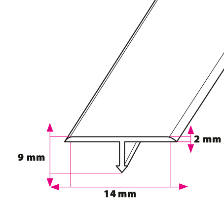 Montering: Skinnen limes fast til underlaget med monteringslim.