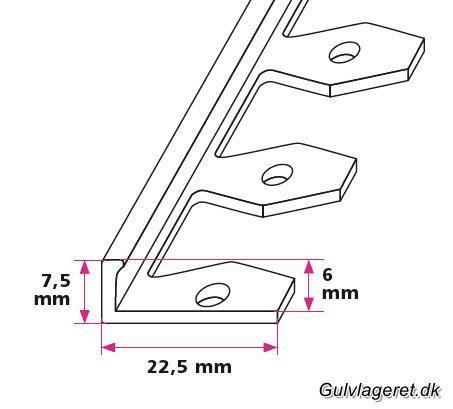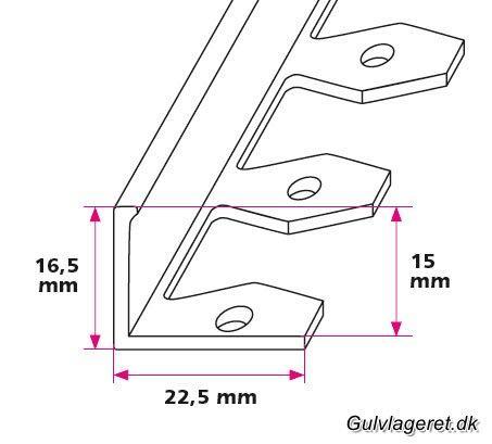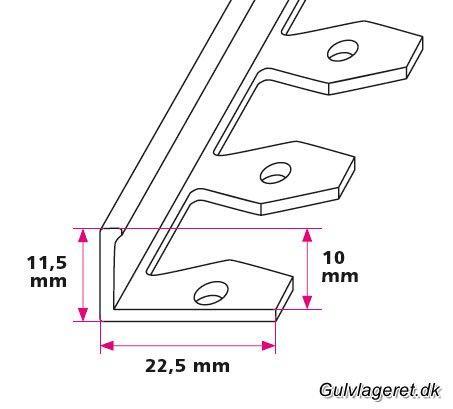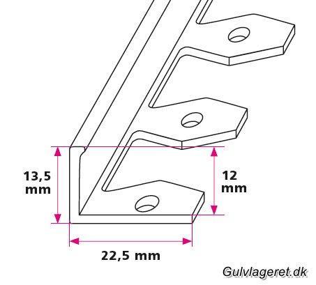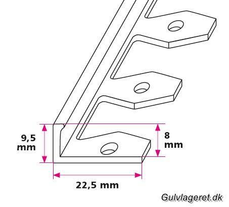 Disse profiler kan bruges til mange forskellige typer af gulvbelægning. Herunder kan du vælge tykkelsen på din belægning så profilet passer perfekt. Bunden af skinnen fylder typisk ca. 1,5 mm. og denne overgang skal altid spartles ud for at opnå det bedste færdige resultat. Er du i tvivl om hvordan du monterer disse profiler så kontakt os endelig.