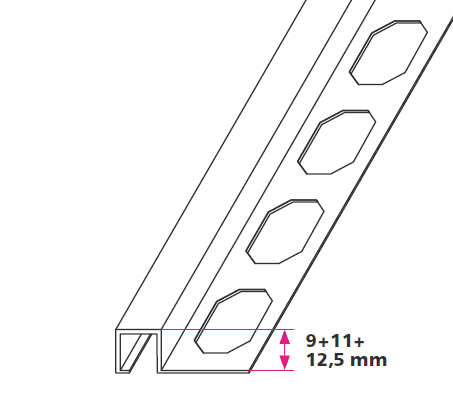Montering: Skinnen limes fast til underlaget med monteringslim.