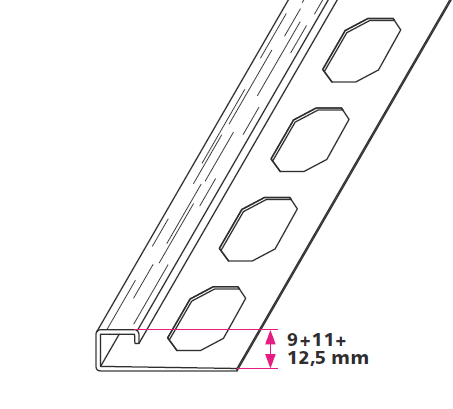 Montering: Skinnen limes fast til underlaget med monteringslim.