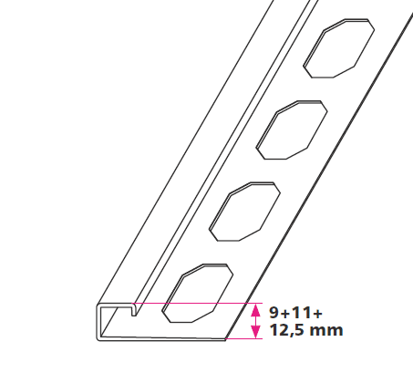 Montering: Skinnen limes fast til underlaget med monteringslim.