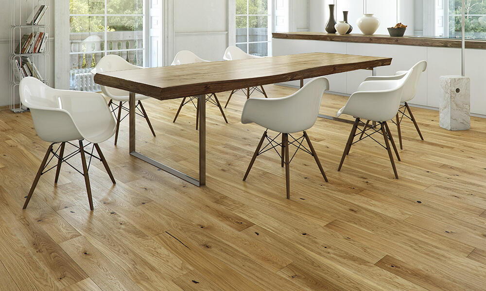 Træ er et levende materiale, og det leverede gulv kan derfor fravige fra det viste. Man bør altid anvende brædder fra samme leverence i samme rum, da der kan forekomme farve- og glansforskelle fra produktion til produktion.