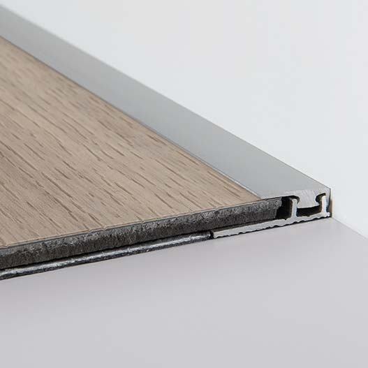 Afslutningsprofil i sølv til vinylgulv. (bolig)