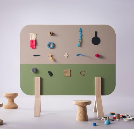 Bulletin Board fremstilles af naturlige og fornybare råvarer. En kombination af oxideret linolie, harpiks og fintmalet kork giver produktet dets fleksibilitet og elasticitet. Denne kombination resulterer i et produkt med en usædvanlig holdbarhed. Med dets styrke og elasticitet er Bulletin Board det ideelle materiale til opslagstavler og alle andre overflader, hvor ideer og information skal udveksles. Opslagstavlematerialet bibeholder dets elasticitet og smuldrer ikke, som det ofte sker for traditionelle softboards. Hullerne trækker sig sammen, når du trækker tegnestiften ud, netop pga. materialets karakteristiske fleksibilitet.
