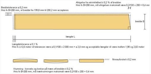 Et trægulv er lavet af et levendemateriale og ved produktionen kan der også forekomme mindre tolerancer. Dette bevirker at der ved et nylagte trægulve kan der forekomme åbninger mellem stavene/brædderne. De produktionsmæssige tilladelige tolerancer er beskrevet i en række EN-normer. Nedenstående figur viser de tolerancer et bræt/en stav skal overholde. De viste tolerancer er produktionstolerancer. Og man skal være opmærksom på, at træets dimension også påvirkes af ændringer i luftfugtigheden. Dette kan medføre ændringer der gør at tolerancerne overskrides.