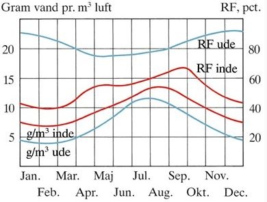 Ved projektering og lægning af trægulve skal der tages hensyn til de uundgåelige dimensions ændringer, der vil forekomme som følge af ændringer i de omgivelser, hvor trægulvet ligger. Over året varierer luftens fugtindhold, dette påvirker trægulve.På figur 1 ses hvorledes luftens absolutte fugtighed og luftens relative fugtighed variere over året,