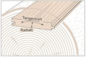 Den fugt betingede dimensionsændring er ikke ens i træets hoved retninger.