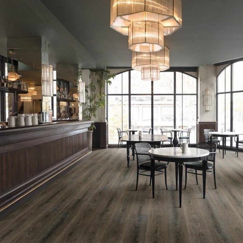 Grand Avenue hich-tech laminat, er ekstra lange og ekstra brede planker som løfter din indretning, til nye højder af elegance og skønhed. Varm, naturlig og indbydende. Brune toner med meget liv.