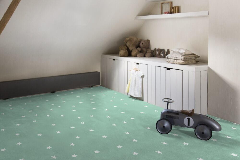 Et flot gulvtæppe som typisk bruges på børneværelset. Tæppet findes i 4 flotte dæmpede farver.
