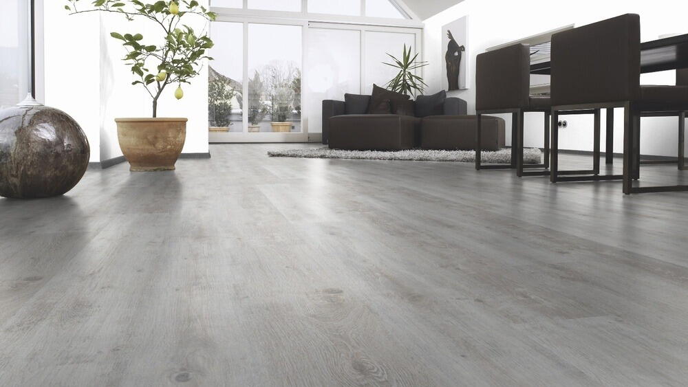 Et laminatgulv med en flot let præget overflade der giver gulvet et mere naturtro udtryk.