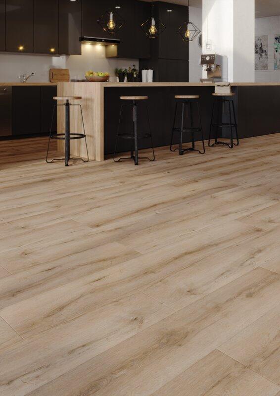Takket være gulvets stabile egenskaber kan det monteres i rum op til 200 m2 uden opdeling. Vi anbefaler dog stadig altid at dele gulvet i døråbninger. 5Gi-lås fra Vällinge gør det muligt at installere gulvet let og hurtigt. Husk at der altid skal monteres vinylunderlag under gulvet, det finder du her.