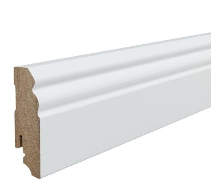 Hvidt fodpanel - Gammeltysk profil, 18 x 70 mm.