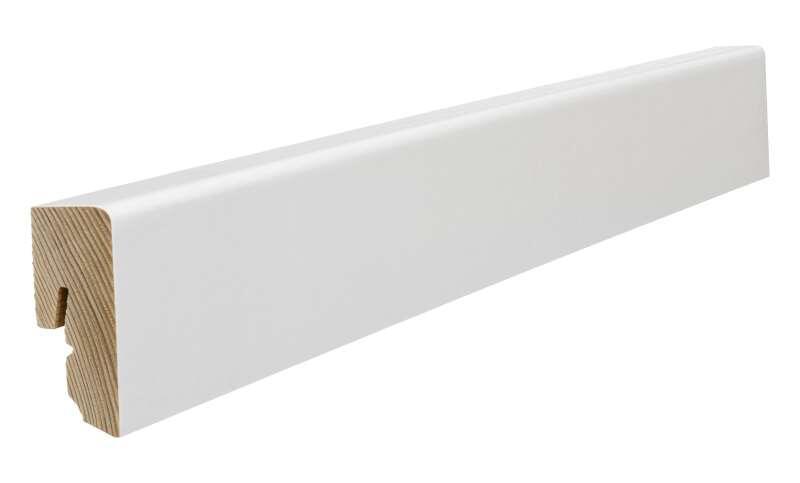 Hvidt fodpanel til parketgulv, 16 x 40 mm. (vandresistent)