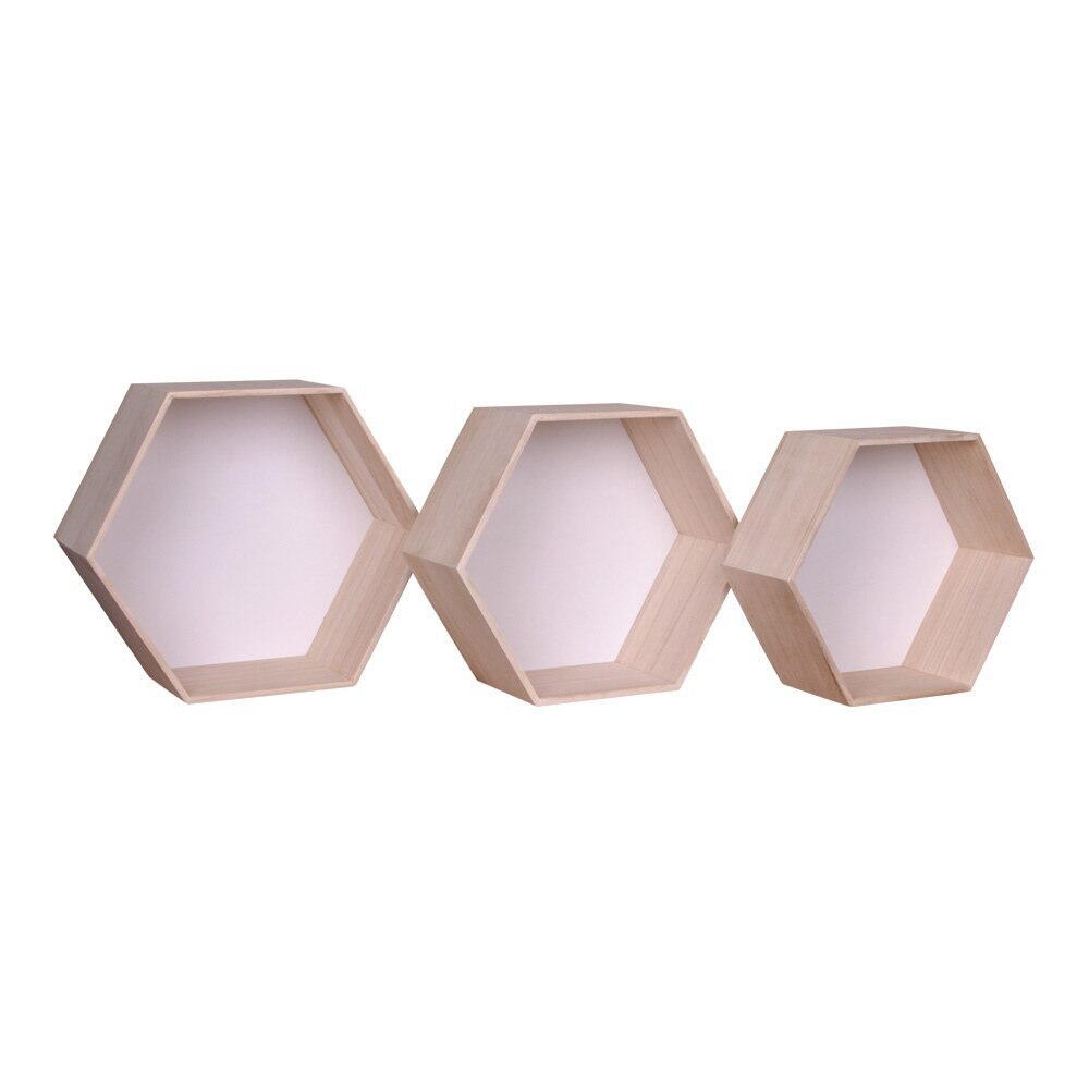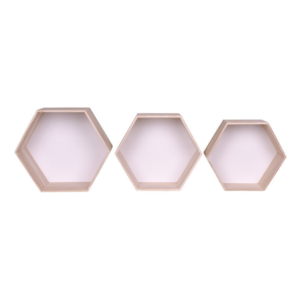 Hylder formet som 6 kanter i 3 størrelser. Den hvide ramme skaber en rolig og stilren flade som er perfekt til vaser og billeder.