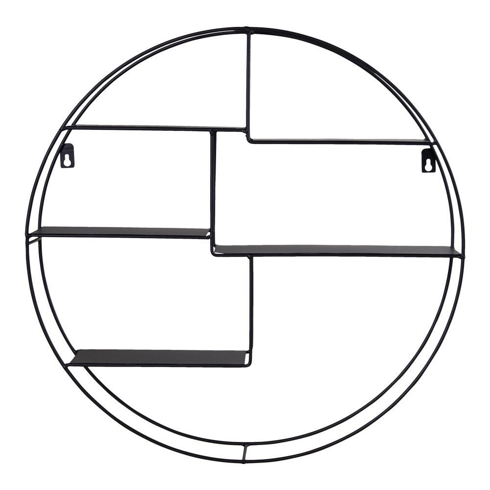 Rund hylde med sort ramme.