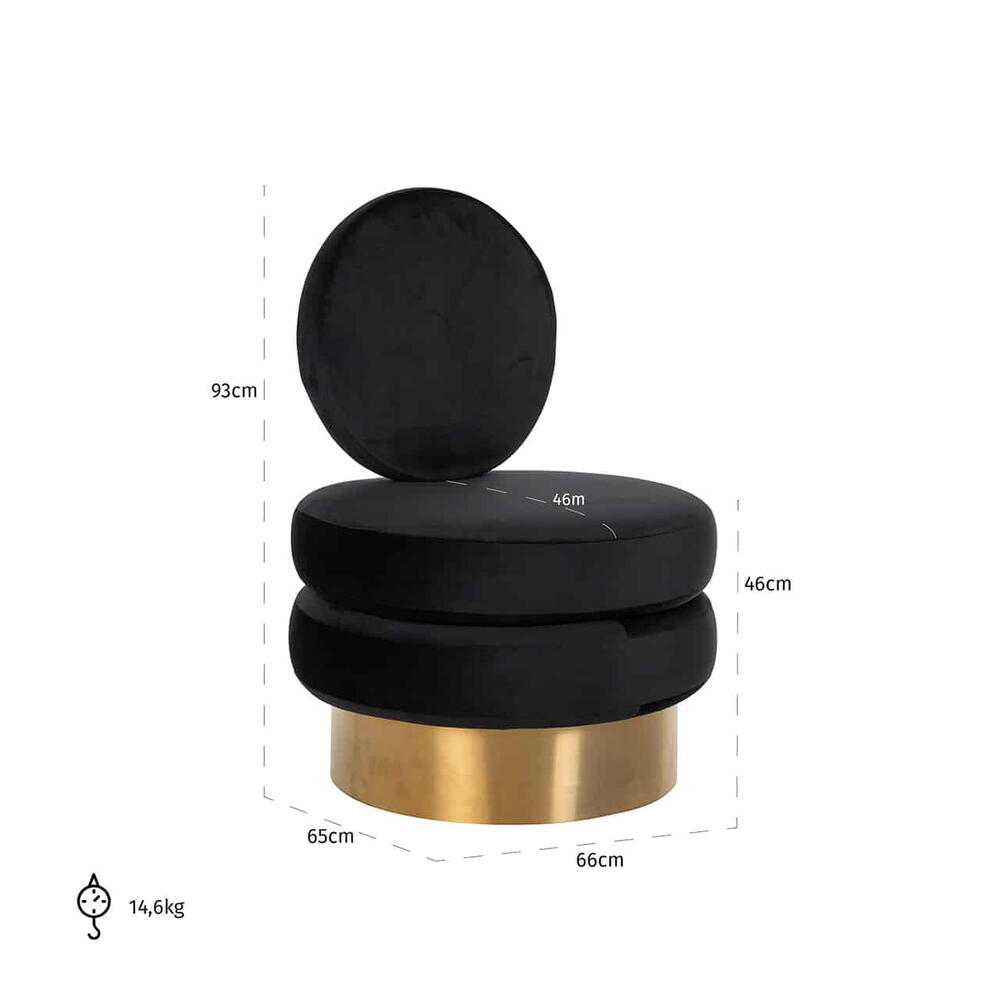Lænestol Balou Black Velvet / Guld