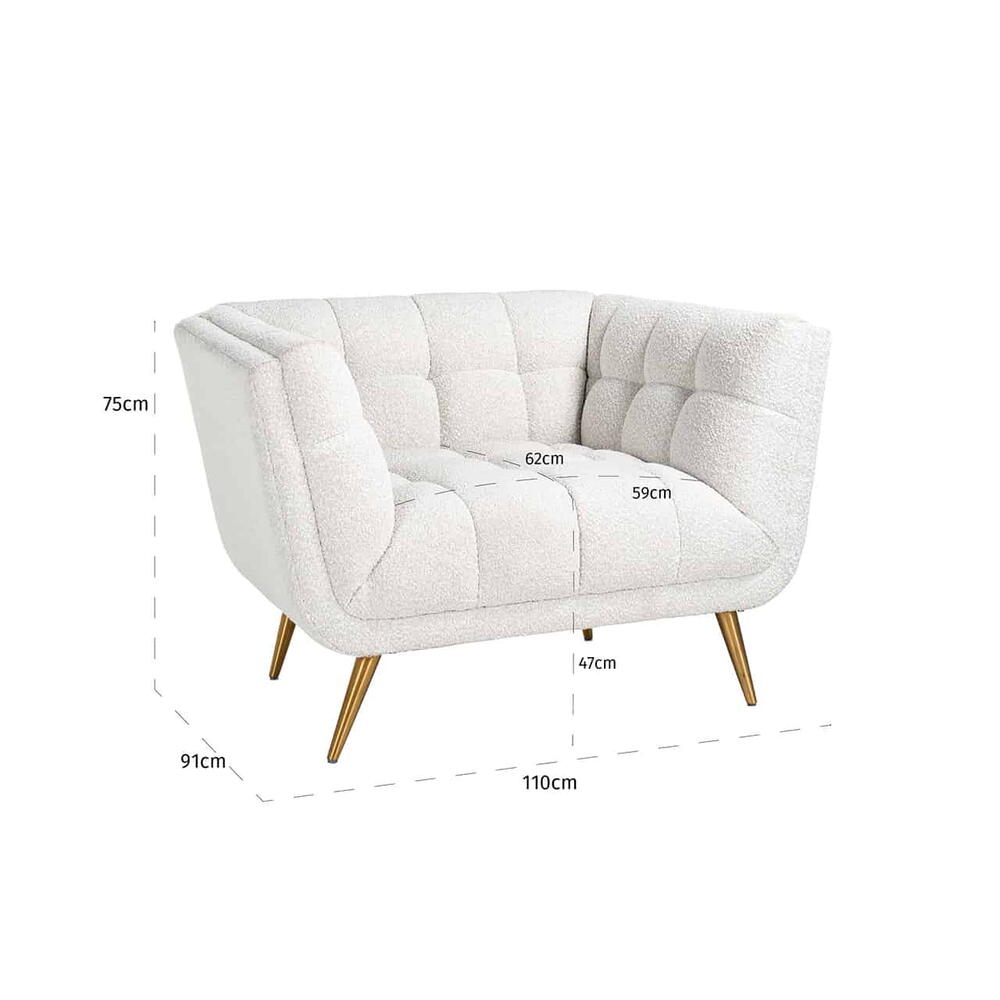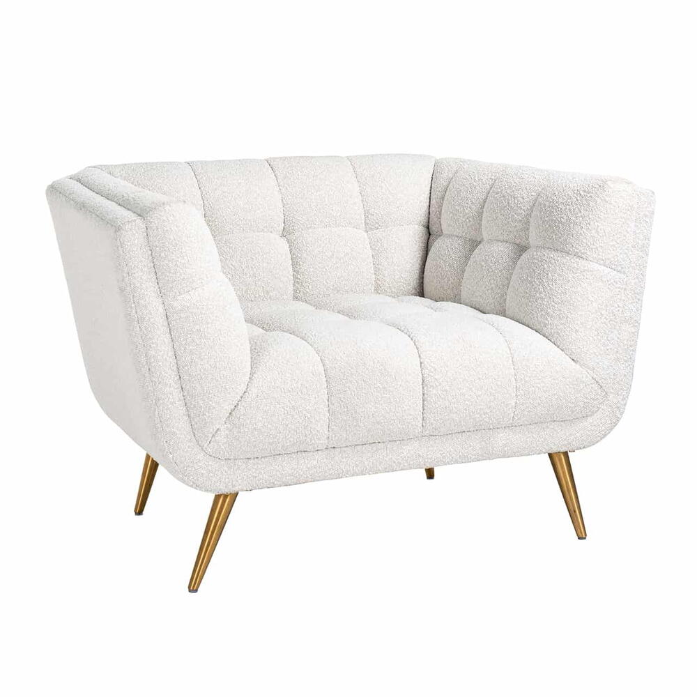 Lænestol Huxley White Bouclé / børstet guld