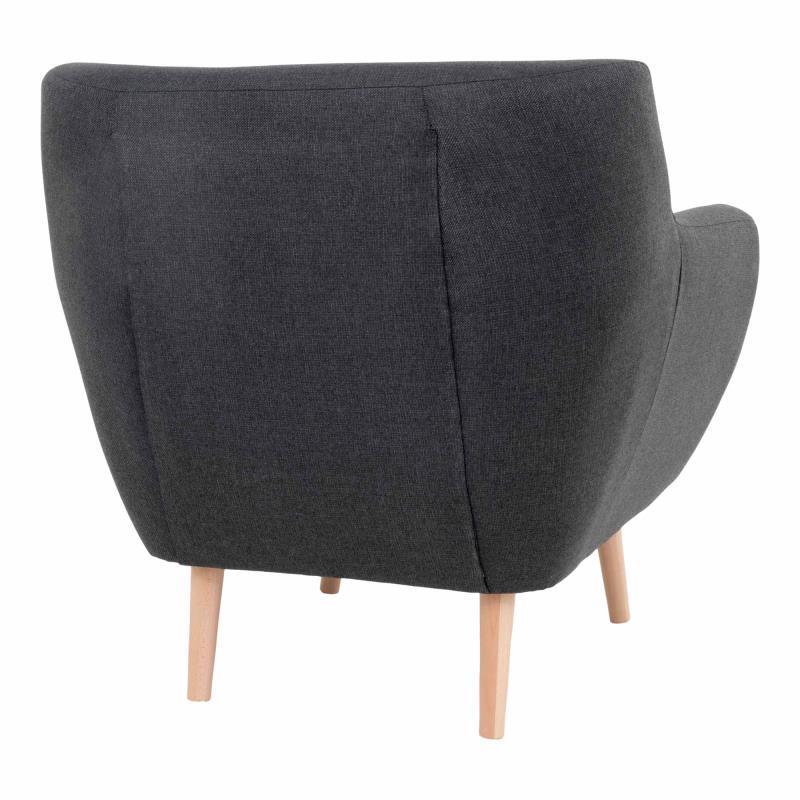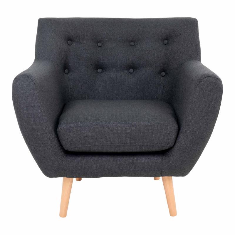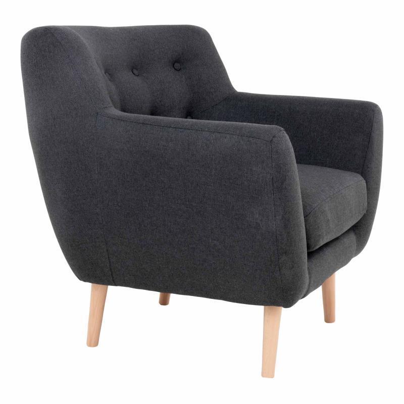 Lænestol i stof med massive egetræsben. Betrækket er slidstærkt og let at holde.