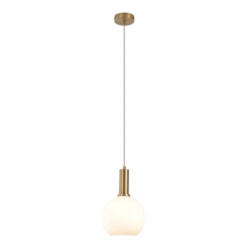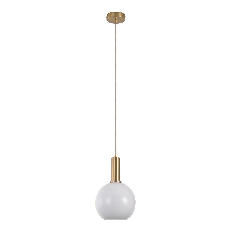 Pendel i kugleformet hvidt glas og messingfatning - 150 cm stofledning - Pære: E27/40W