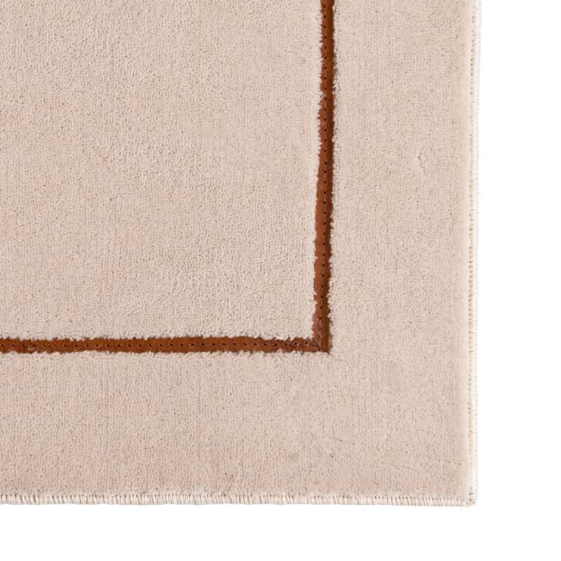 Tæppet har fået tilføjet en læderstrimmel i den udskåret fordybning. En flot detalje som giver dit tæppe et smart og eksklusivt look.