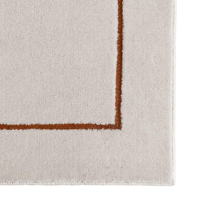 Tæppet har fået tilføjet en læderstrimmel i den udskåret fordybning. En flot detalje som giver dit tæppe et smart og eksklusivt look.