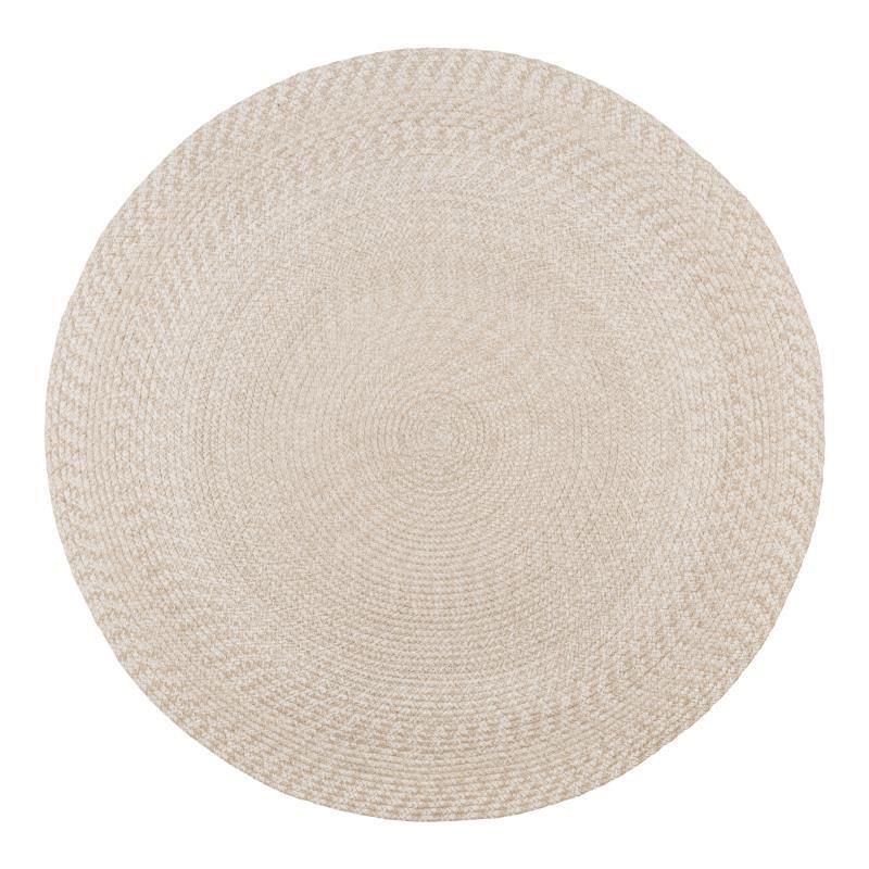 Rundt flettet tæppe i sand - lavet af 100% genanvendt plastik