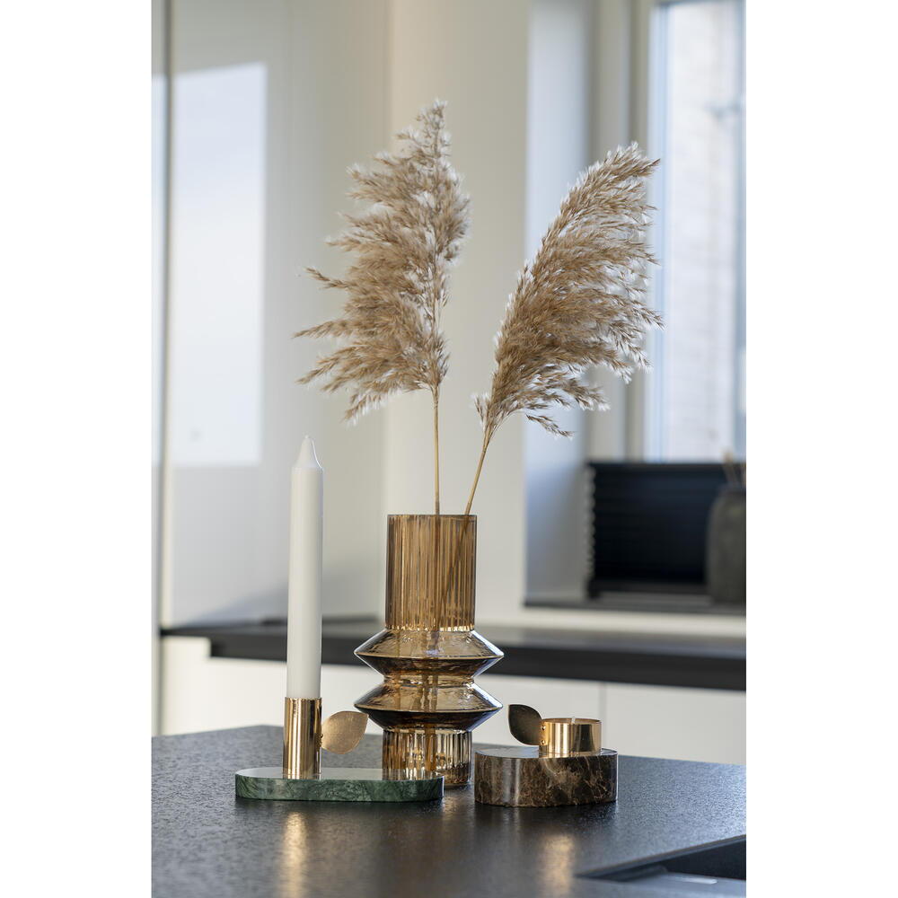 Lysestage i grøn marmor med messing holder, 14x7 cm.
