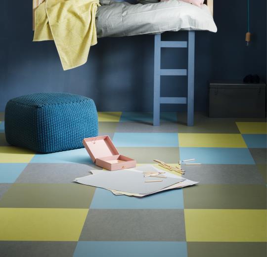 Marmoleum Click er hurtigt og nemt at montere idet det klikkes sammen med det særlige fjeder og not-låsesystem. Det er nemt