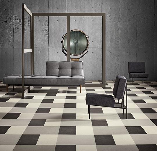 Med Marmoleum Modular kan du forme individuelle gulvdesign, der udtrykker din egen stil. De bæredygtige og yderst holdbare linoleumsfliser findes i størrelserne 25x25 cm i forskellige farver og mønstre og to af farverne fås i 50x25.