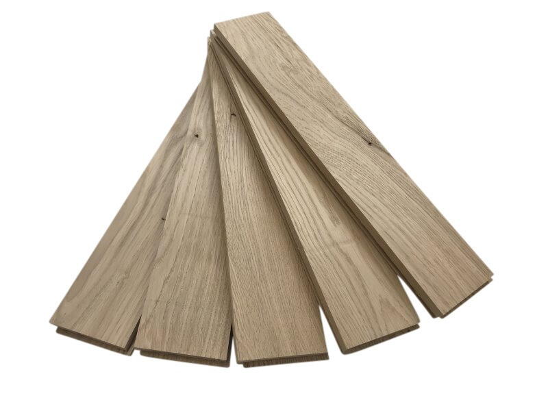 Leveres med fer/not og skal limes til undergulvet med parketlim.
