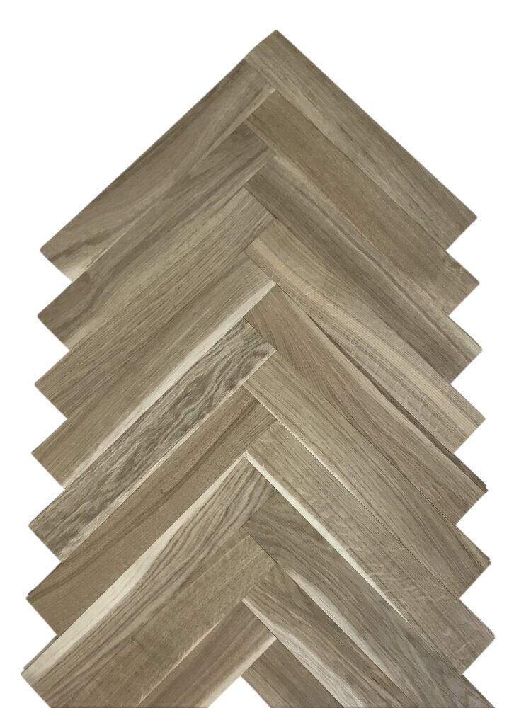 Sildebensparket i massiv egetræ. Rustik sorteringen indeholder hvid splint som også kan ses på billedet.
