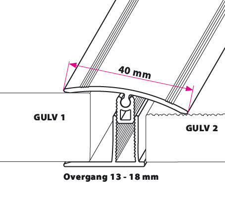 40 mm Multi overgangsprofil Beige grå eg - høj