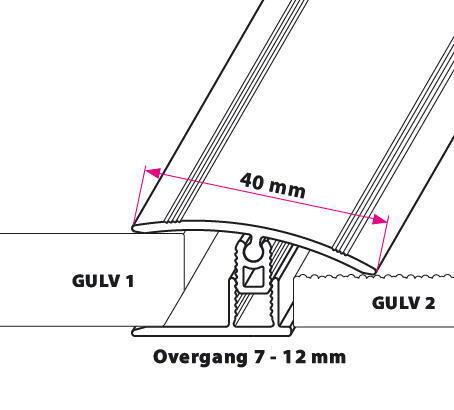40 mm Multi overgangsprofil Beige grå eg - Lav