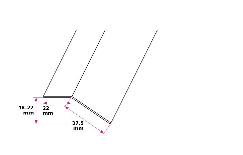 Montering: Skinnen limes fast til underlaget med monteringslim