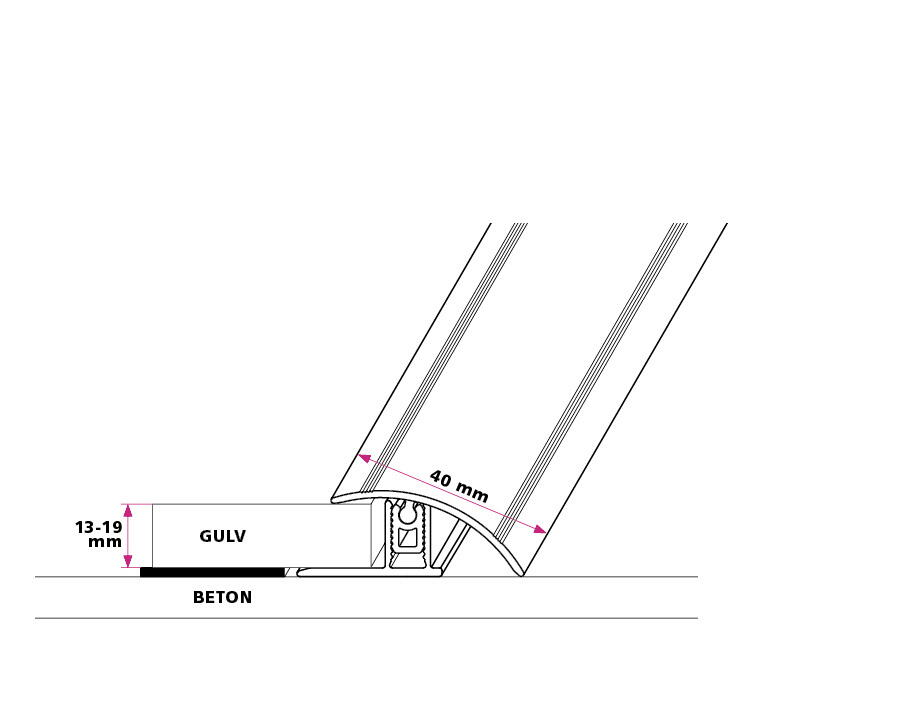 Multi Flex overgangsprofil til gulve med en tykkelse på 13-19 mm.