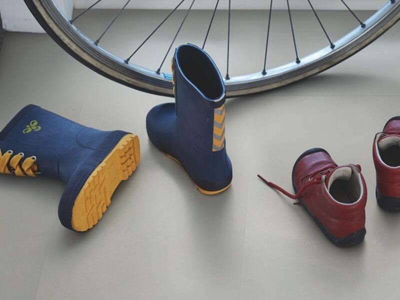 Elegant betonlook, passer godt sammen med træ i varme toner. Minimalistisk facet, mat struktur med stenkarakter og diskrete farvebevægelser. Premium har et yderst holdbart slidlag til boligområder med PerfectFold™ V for hurtig, nem montering.