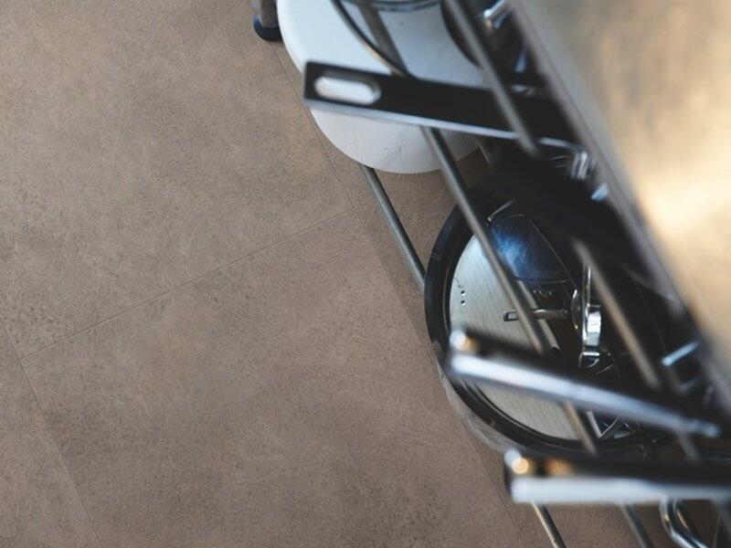 Oxideret metal beton er svaret på tendensen med oxiderede, metalliske overflader. Dens elegante betonudseende er ideelt til eksklusive, moderne designinteriør og kobbertilbehør. Flisedesignet er perfekt til rum, hvor du ønsker et udseende af keramiske fliser, men varmen og blødheden fra vinyl. Med to fliser pr. planke, er montering både hurtig og effektiv. Vores Premium-kvalitetsniveau med vores nye, PerfectFold™ V kliksystem gør monteringen endnu lettere end før, og er det perfekte valg til hjemmebrug.