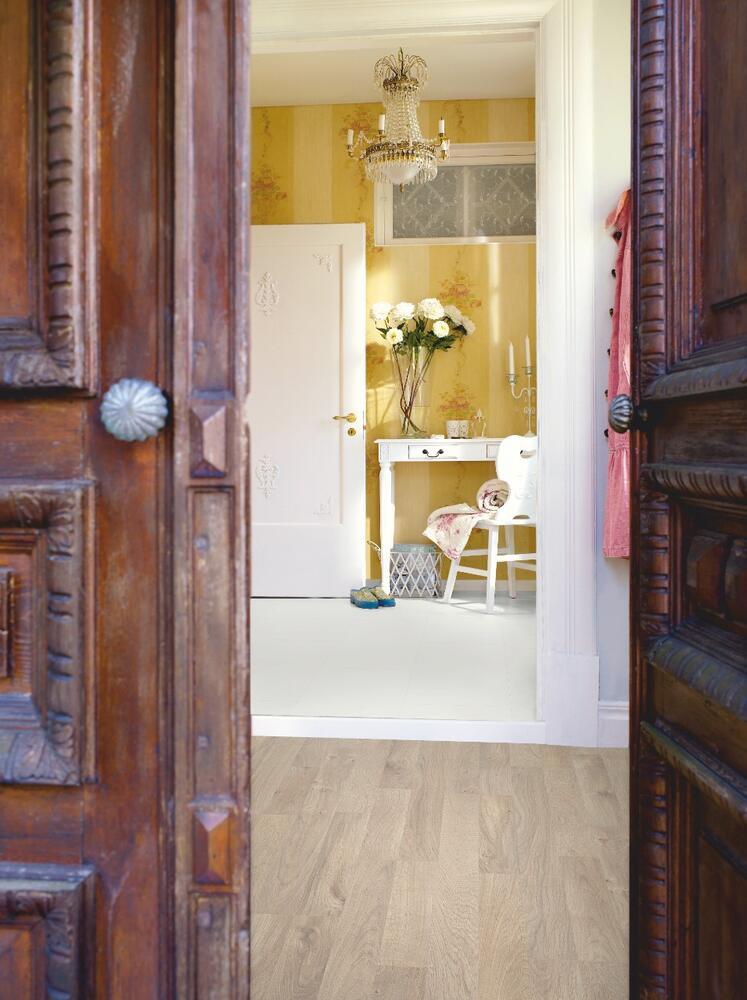 Linnen Oak har klassisk plankelængde med en let poleret struktur, der følger træets årer i alle detaljer, suppleret med en silkemat finish. Takket være AquaSafe-teknologien tilbyder dette laminatgulv enestående beskyttelse mod vand.